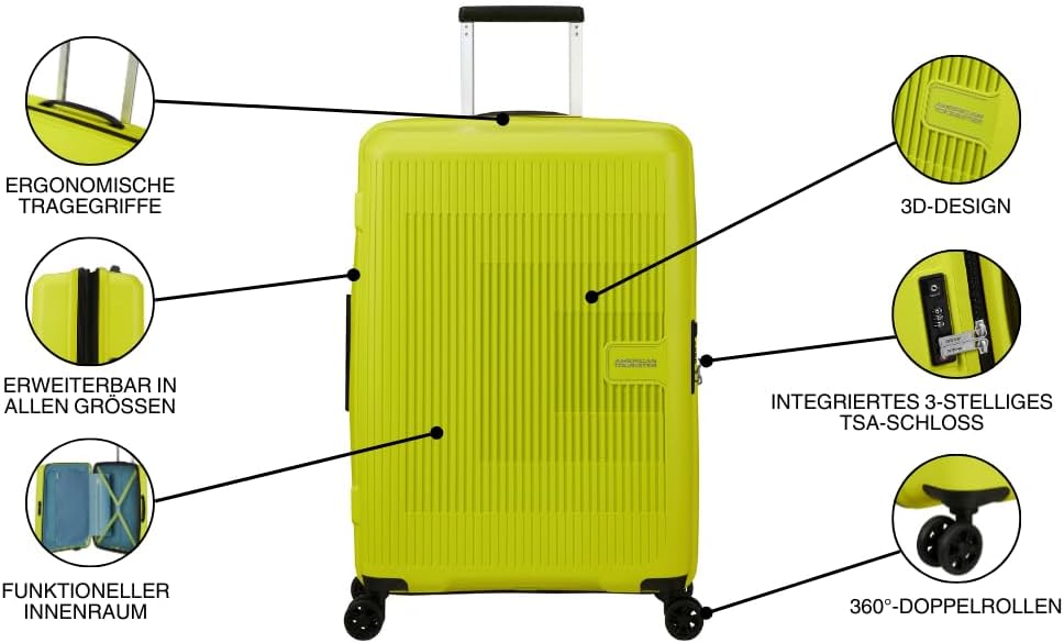 Ich habe kürzlich den American Tourister Aerostep Spinner S in der Farbe Licht Lime erworben und möchte meine ehrliche und detaillierte Meinung darüber teilen. Dieses Handgepäckstück wurde entworfen, um sowohl stilvoll als auch funktional zu sein, und es hat sich in der Praxis als äußerst nützlich erwiesen.